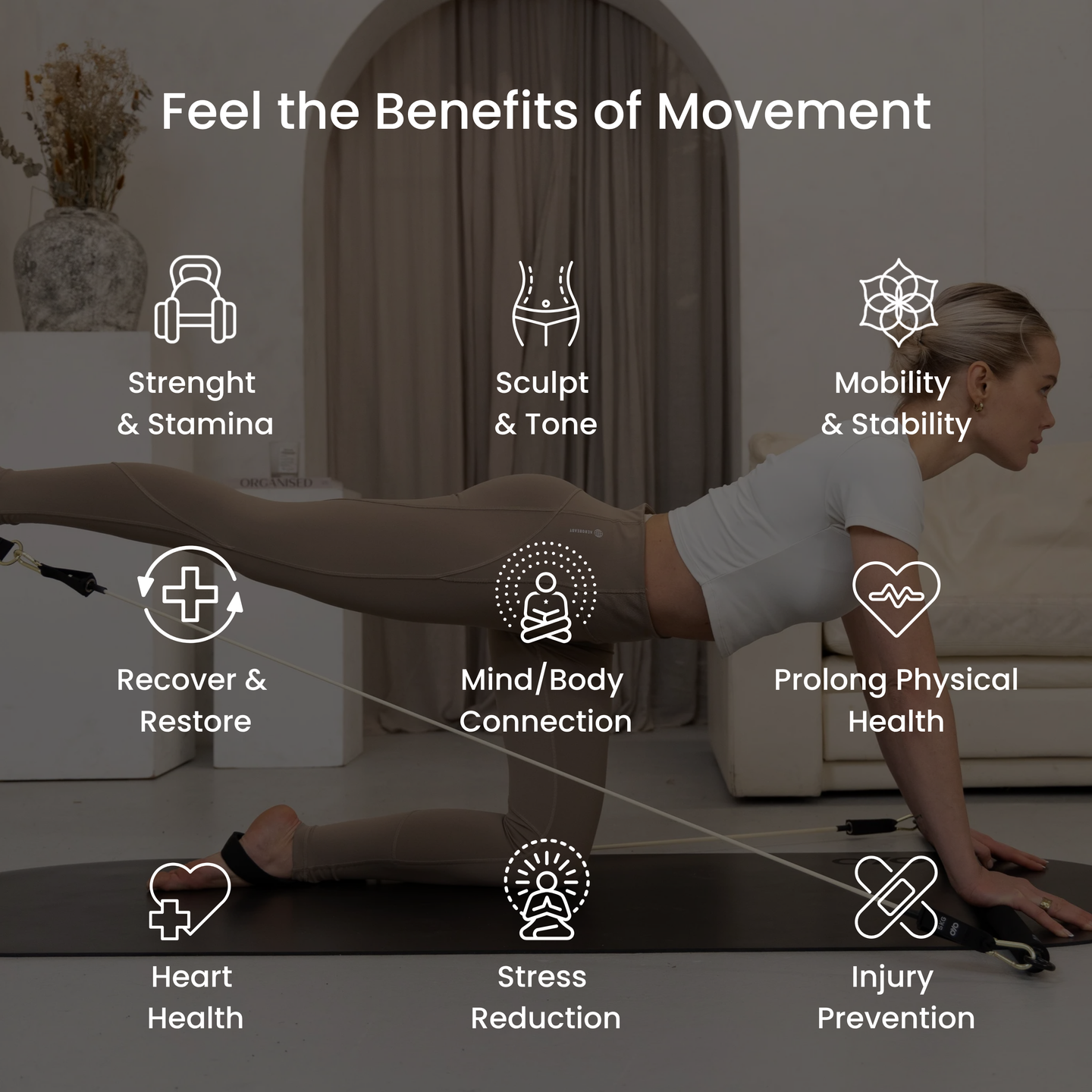 It allows me to combine Pilates precision with mindful flow — the perfect balance of strength and serenity for home practice.