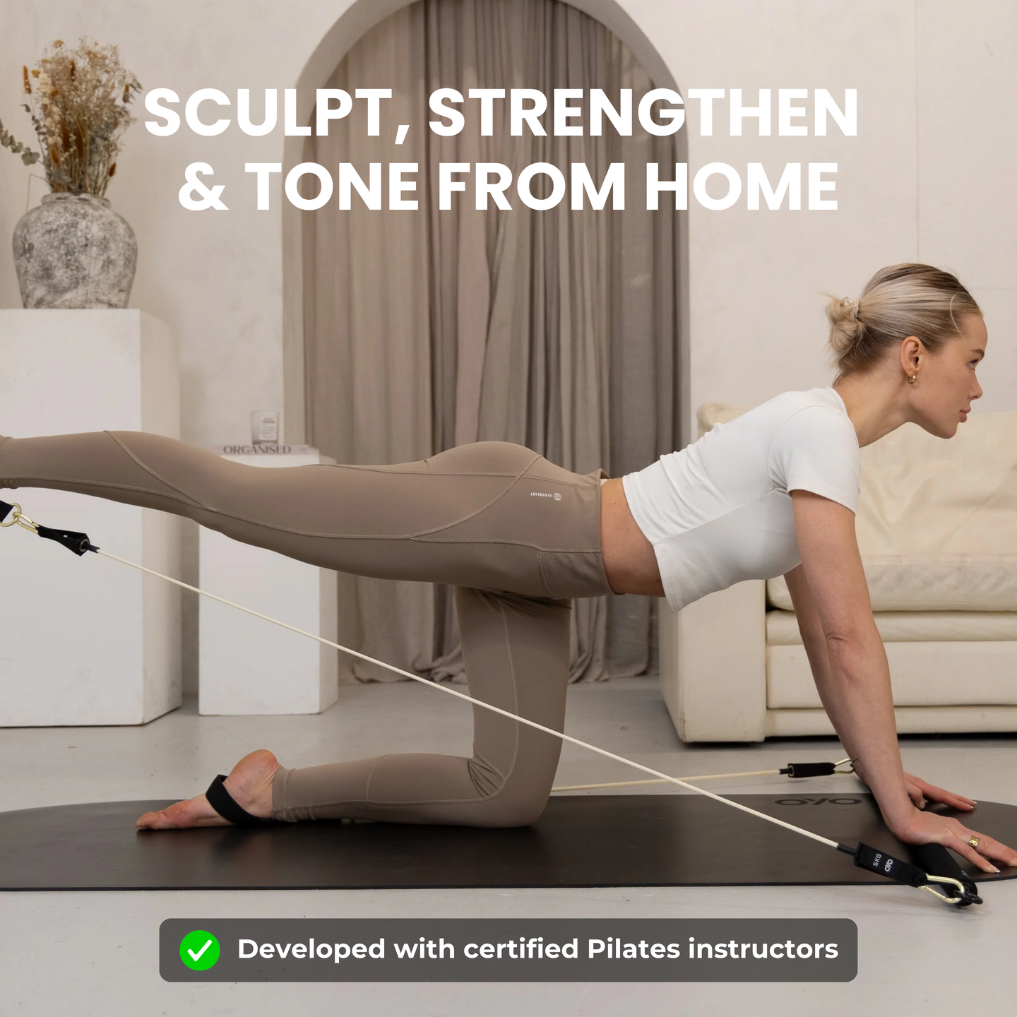 With over 10 years of teaching experience each, they both use the kit themselves and recommend it to their clients as a low-impact home workout solution and an effective alternative to traditional Pilates or reformer classes.